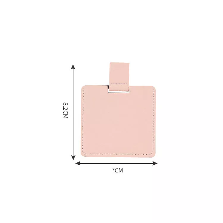Ова џебно огледало со големина на кредитна картичка се одликува со мека PU кожна обвивка и површина од не'рѓосувачки челик отпорна на кршење. Неговиот тенок, пренослив дизајн лесно се вклопува во паричници или чанти, идеален за допири во движење. Приспособливото лого и бои го прават совршен за подароци или брендирање.
