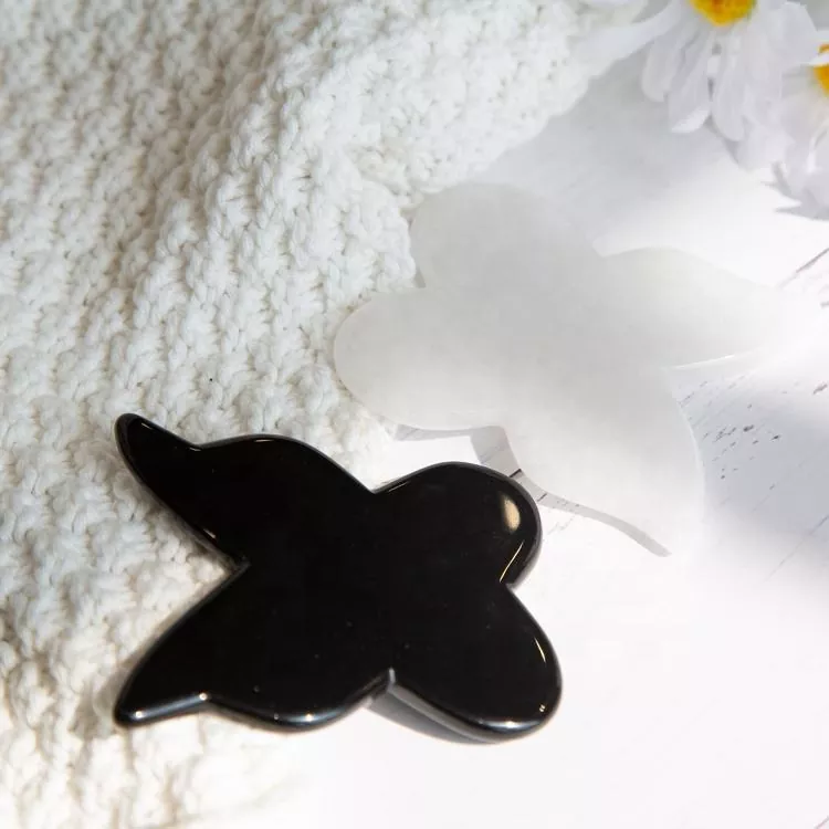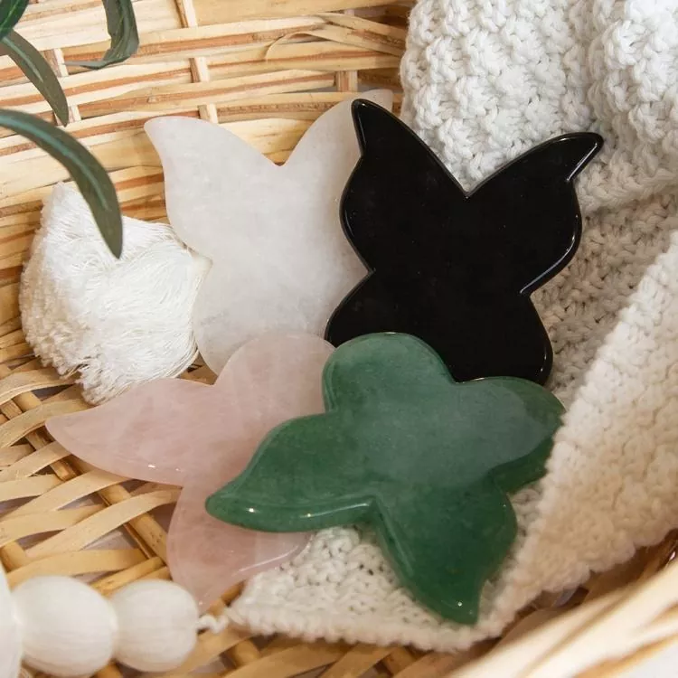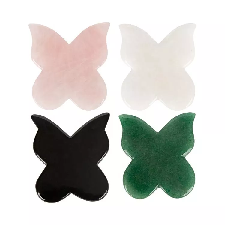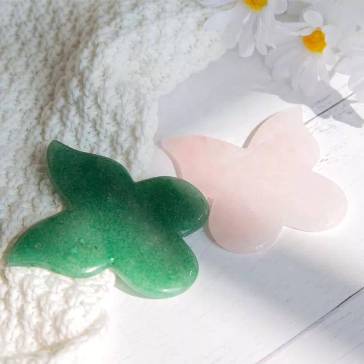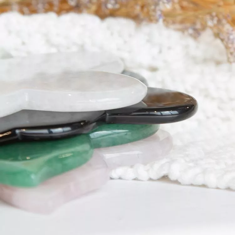 Изработена од 100% природен жад, ролерот има голема глава од 30 мм за образи/чело и мала глава од 15 мм под очите/носот. Алатката Гуа Ша има 4 заоблени рабови: еден за вилица, два за образи, еден за храмови. И двајцата остануваат кул за да ја намалат подпухналост и мирна иритација.