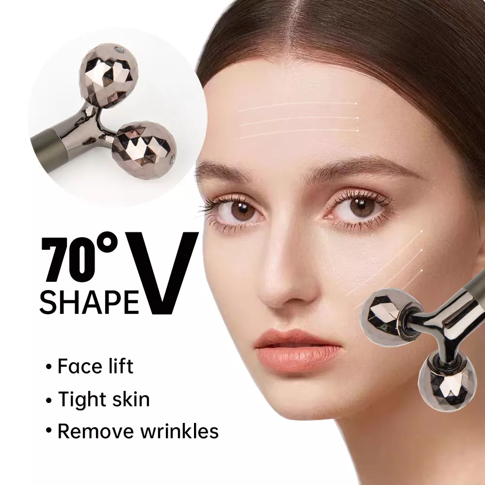 Двојни ролери од не'рѓосувачки челик од 20 мм со огледало-полирани површини-кула на допир, намалување на подпухналост и смирувачки црвенило. Ергономската рачка од 15 см нуди зафат што не се лизга, балансирајќи го притисокот за нежни до цврсти масажи. Ролерите ротираат 360 ° за да летаат над контурите: вилица, јаготки, храмови.