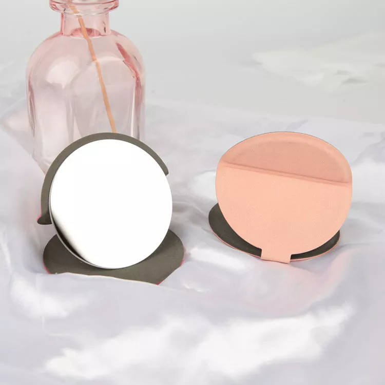 Компактниот кружен преклоплив дизајн комбинира практичност со минималистички стил. Меката PU кожна обвивка го штити стакленото огледало со висока дефиниција, нудејќи јасен рефлексија без изобличување за прецизна шминка и нега на кожата. Вградениот држач за преклопување овозможува користење без раце, додека дијаметарот од 7,0 cm лесно се вклопува во чанти или чанти за шминка, идеален за патување и допири во движење. Трендовските опции за бои и приспособеното печатење на лого го прават совршен за брендови на приватни етикети и промотивни подароци.