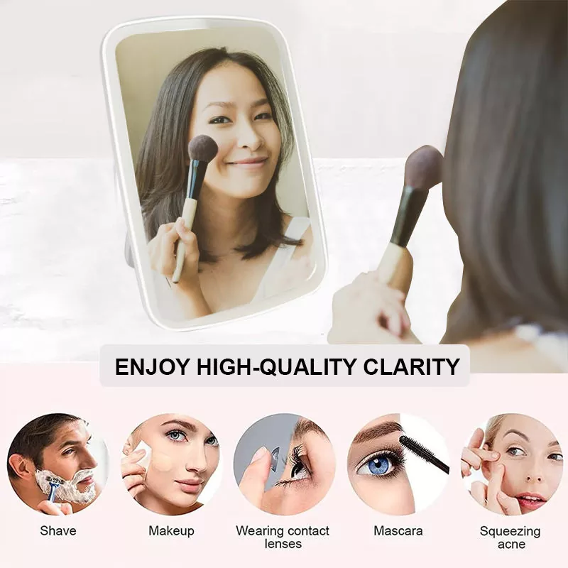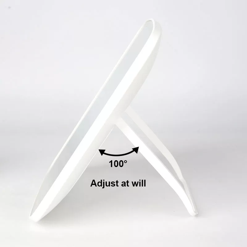 Ова огледало за шминкање на маса има 3 прилагодливи режими на светлина (ладно, природно, топло) за да одговараат на различни сценарија за шминка, обезбедувајќи вистинско осветлување за прецизна примена. Нејзиниот прилагодлив држач за 100° овозможува флексибилни агли на гледање, додека тенкиот и лесен дизајн обезбедува лесна преносливост.