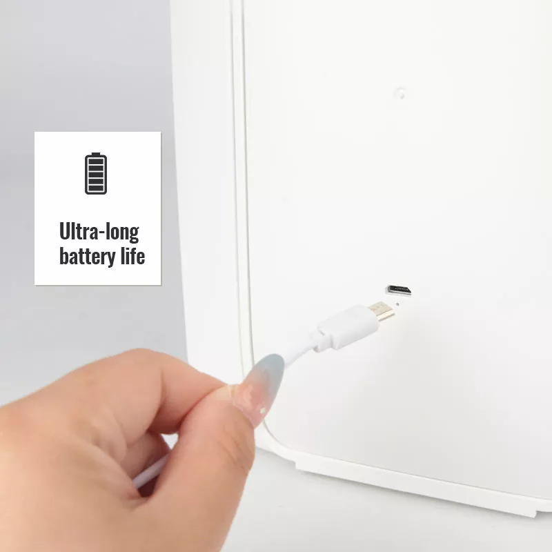 Напојуван од вградена батерија на полнење, ова огледало поддржува брзо полнење USB-C и нуди ултра долг век на батеријата за продолжена употреба. Нема потреба од често полнење, што го прави сигурен и за секојдневна домашна употреба и за долги патувања. Енергетски ефикасниот LED дизајн исто така ја намалува потрошувачката на енергија.